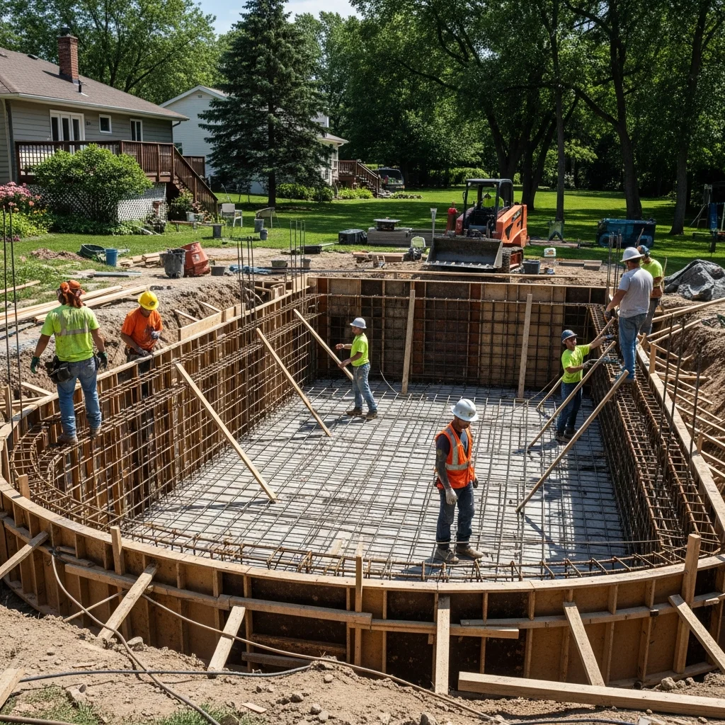 Multiple phases of work. A new pool job might include demolition (if removing an old pool), excavation, steel reinforcement, plumbing rough-in, electrical rough-in, shell construction, tile and coping, decking, equipment installation, and final filling and startup. Each phase has its own materials, labor, and timeline.